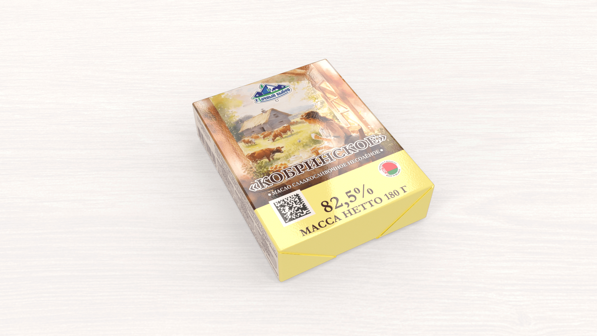 "Slivochnoe" butter 61.5%. It is natural butter which is produced from cream. The product has clean aroma and pasteurized cream flavor which is typical for butter, its fracture behavior is plastic.