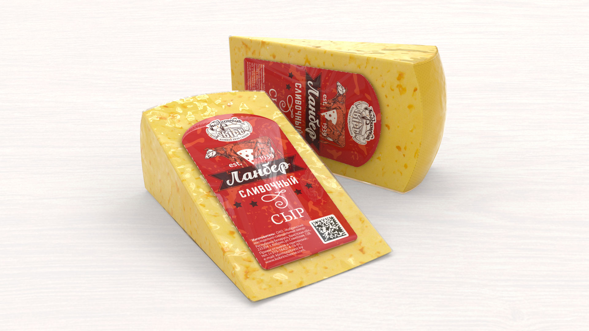 LANBER CREAM CHEESE 50% PACKAGED SEGMENT The cheese has a wonderful delicate creamy taste with the aroma of butter and cream, and a slight sourness. The consistency of the cheese is delicate, plastic; the color of the dough is pale yellow.The thin multi-layered polyolefin film significantly extends the shelf life of the cheese divided into portions. It ensures the preservation of taste qualities due to reliable protection from odors and gases from the outside. There is a special gas environment inside such a package. Due to the lack of oxygen in it, the product does not deteriorate as quickly as in the case of using conventional stretch film, and at the same time it breathes, which is not allowed by vacuum packaging.