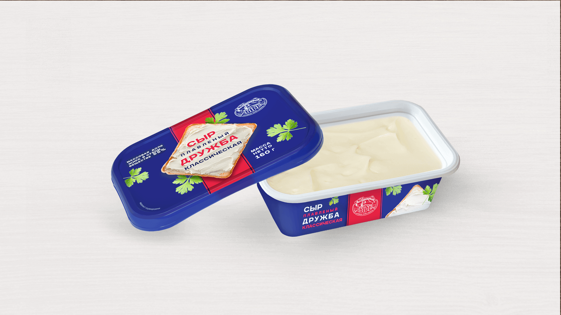 Pasty processed cheese Druzhba classic with a mass fraction of fat in dry matter of 55%. The wisdom of classical traditions and taste. Loved by all generations.Cheese belongs to the group of pasty cheeses, has a delicate, plastic, smearing consistency, and a pronounced cheesy taste with sourness.