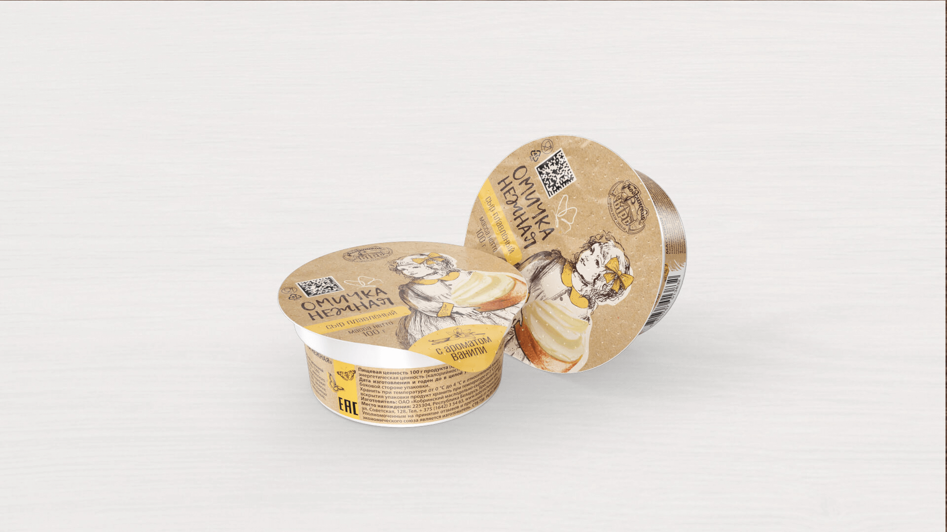 Processed cheese "OMICHKA NEZHNAYA" 50% sweet, with vanilla flavor