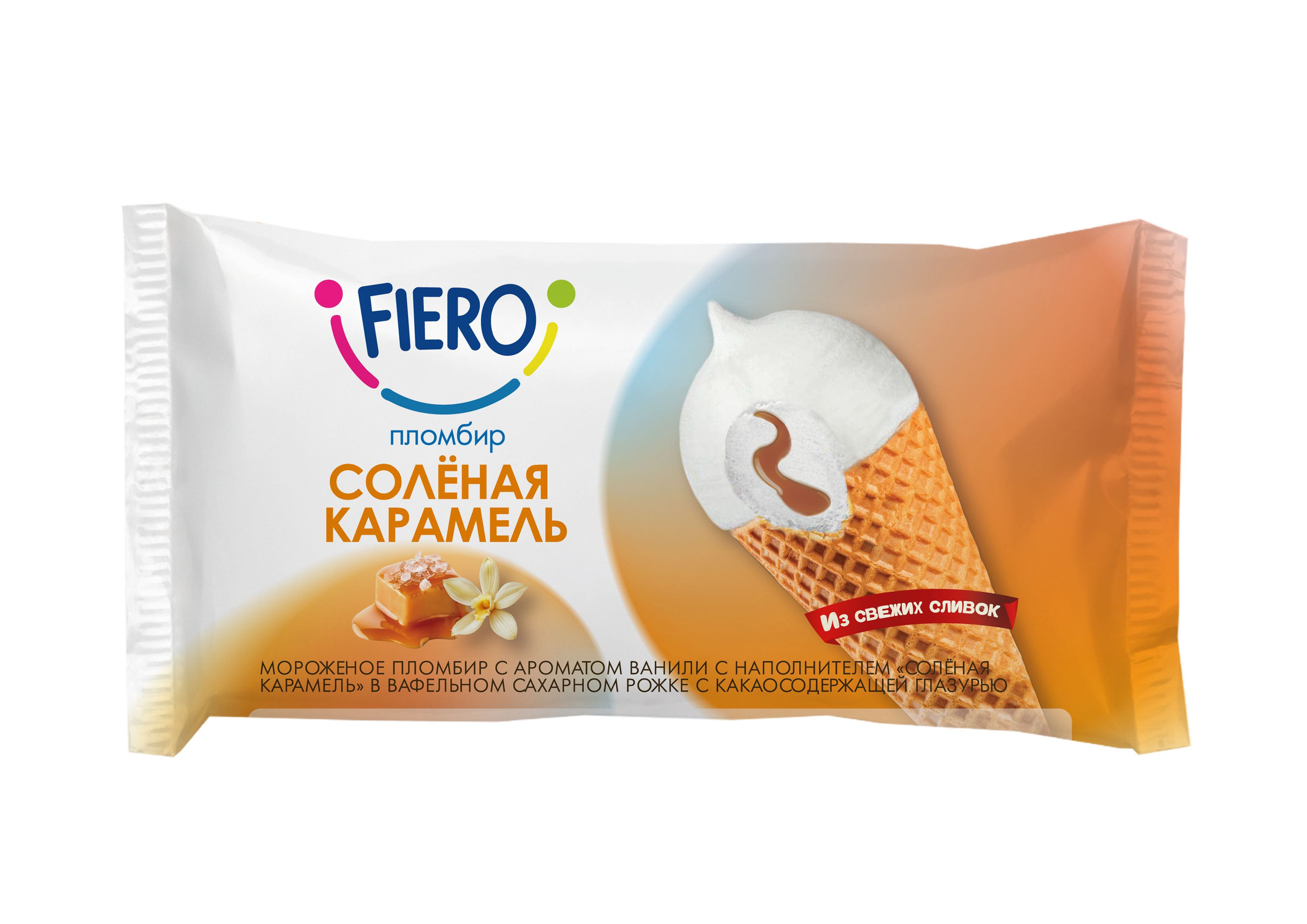 Discover the harmony of tastes! The most delicate vanilla ice cream under the brand name "FIERO" is a cloud of pleasure, but the real magic is inside! The thick Salted Caramel creates a delightful contrast: the sweetness of vanilla meets velvety caramel and exquisite a pinch of salt that reveals the taste! All this splendor is enclosed in a crispy waffle sugar cone with delicious chocolate icing inside. Allow yourself a moment of pure bliss – where the piquant crunch of a waffle cone and the tenderness of vanilla ice cream are perfectly combined with a bold salty hint of caramel!